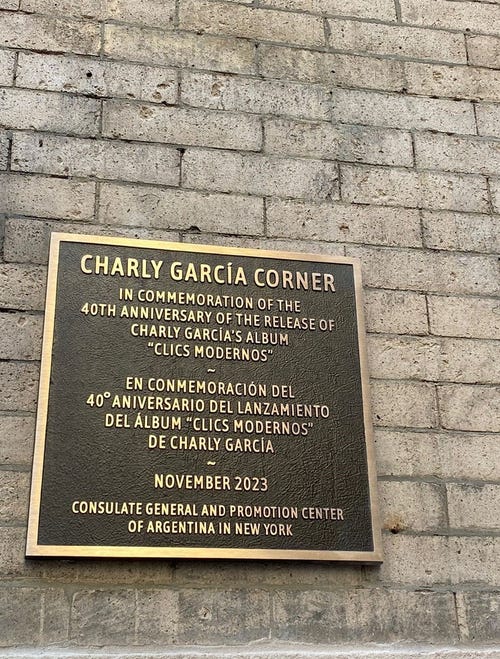 Postscript: In 2023, the spot on Walker Street and Cortlandt where the cover photo for the album was taken was renamed “Charly García Corner.”